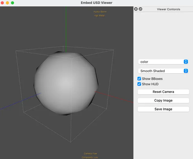 uv run --env-file=.env usdview OpenUSD/extras/usd/tutorials/convertingLayerFormats/Sphere.usda初回は起動に時間がかかることがあります。